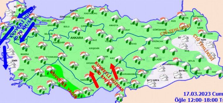 Meteoroloji, Antalya, Isparta, Mersin, Adana, Kahramanmaraş, Gaziantep, Kilis, Adıyaman, Şanlıurfa ve Mardin çevrelerinde yer yer kuvvetli yağış...